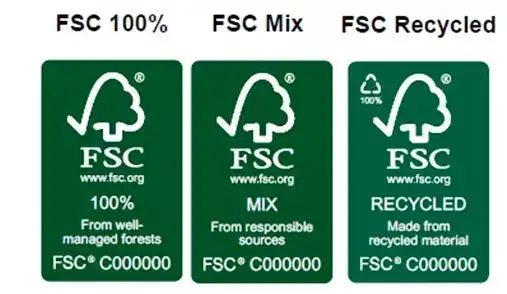 FSC标签有3种,必须根据产品或材料的相关要求选择正确的标签。每种标签都有两种设计选择,可根据标签可用空间进行选择。